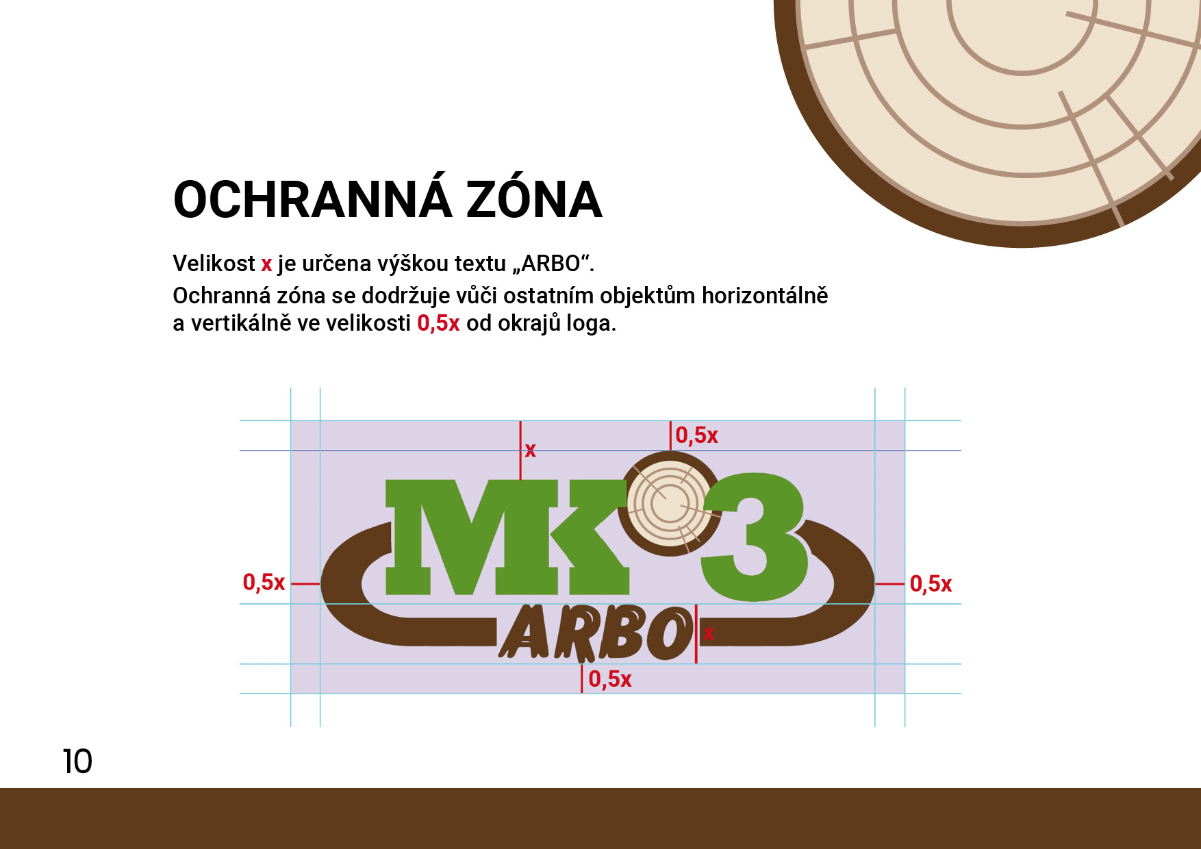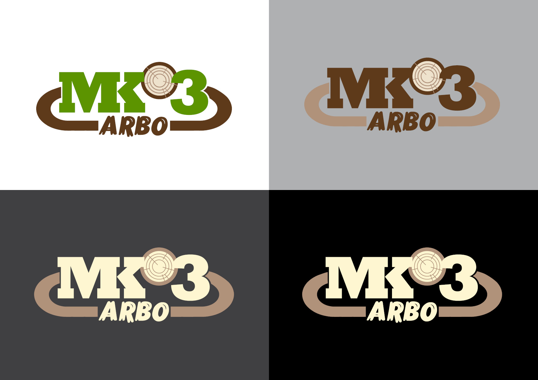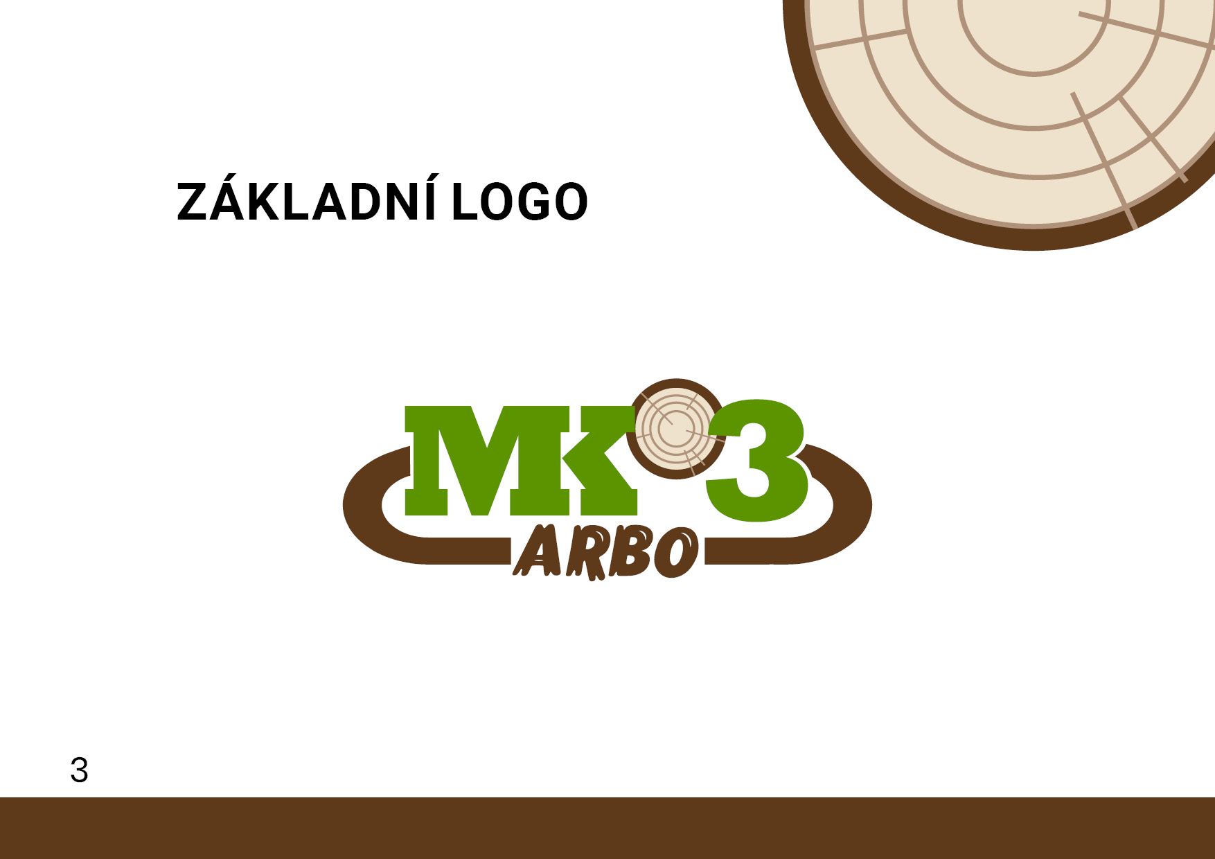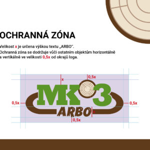 - Logo vychází z původního loga MK3 a jednotlivé prvky jsou přizpůsobeny arboristické tematice – místo slunce nad silnicí (technické služby, na které se zaměřuje společnost MK3, a.s.) zde symbolizuje hnědá barva dřevo, zelená listí, a místo slunce zde máme průřez kmene s letokruhy. Na první pohled jde díky tomuto vizuálu o související společnosti.