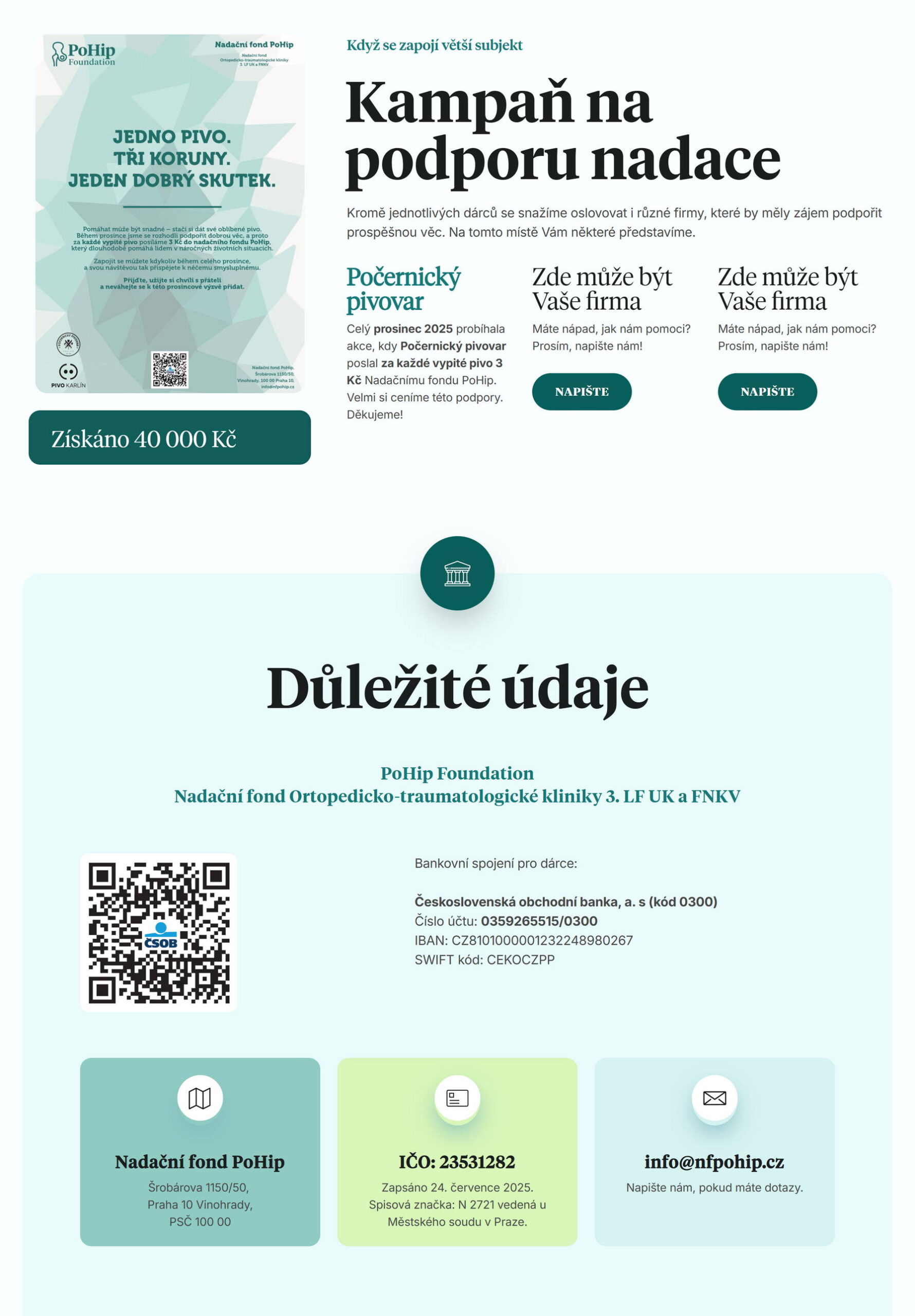 Nadační fond Ortopedicko-traumatologické kliniky 3. LF UK a FNKV vznikl v polovině roku 2025 za účelem podpory výše uvedené kliniky, přímo a bez nadbytečné byrokracie. Umožňuje jednotlivým dárcům z řad veřejnosti i firmám podílet se na rozvoji diagnostiky a léčby, zvyšování komfortu lůžkového oddělení, nákupu různého vybavení či financování vzdělávacích, publikačních a propagačních aktivit Ortopedicko-traumatologické kliniky.